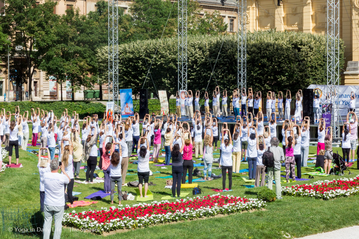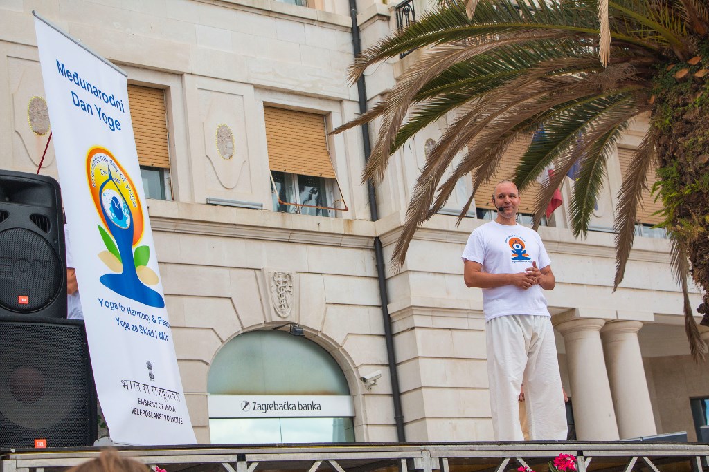 Centralna proslava u Zagrebu započela je u prelijepom suncem okupanom parku na Tomislavovom trgu pozdravnim govorom njegove ekscelencije Indijskog veleposlanika u Hrvatskoj, g. Sandipa Kumara. Unatoč praznicima kada većina sa kontinenta u Hrvatskoj odlazi na more, ovom se prilikom ipak okupio značajan broj ljudi koji su željeli zajedno proslaviti dan joge. Preko 300 vježbača vježbalo je službeni dio programa kao i predstavljanje najvećih zagrebačkih škola koje je usljedilo nakon toga. Uz kraću pauzu uz tradicionalni indijski plese i osvježenje uz čaj, to i nije bilo teško.