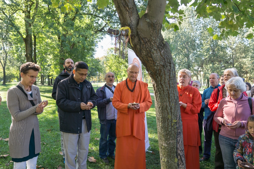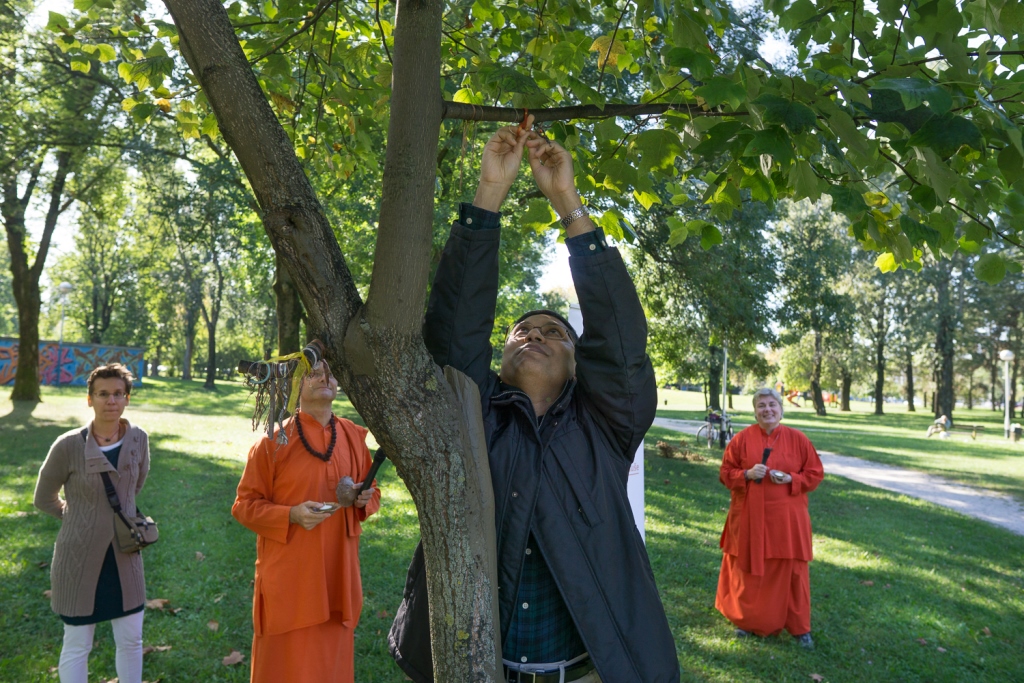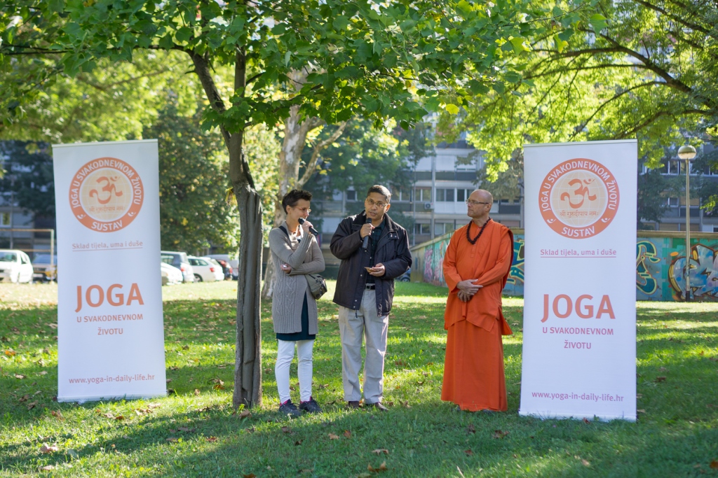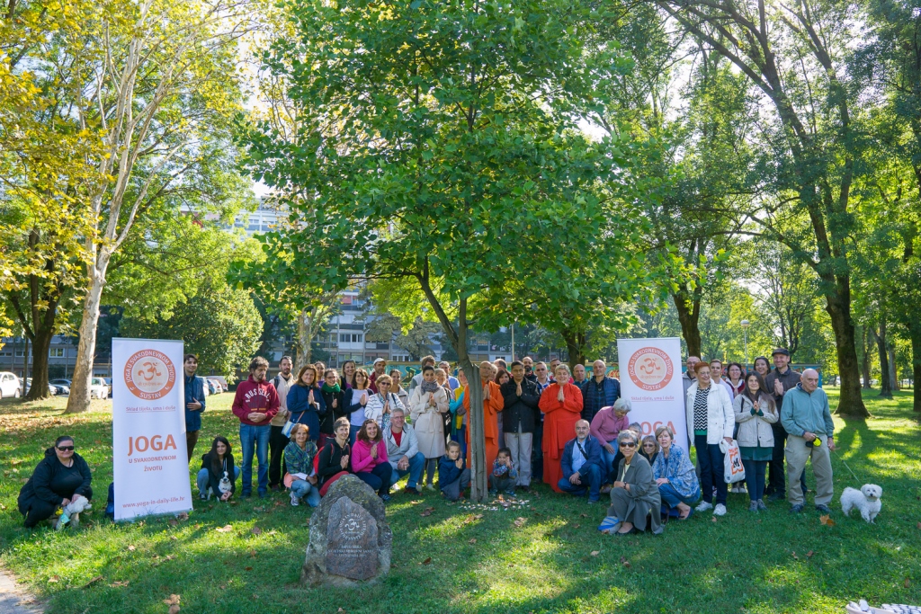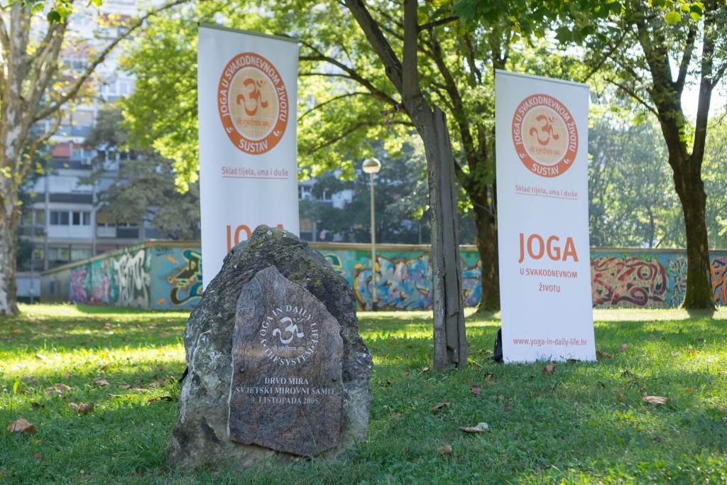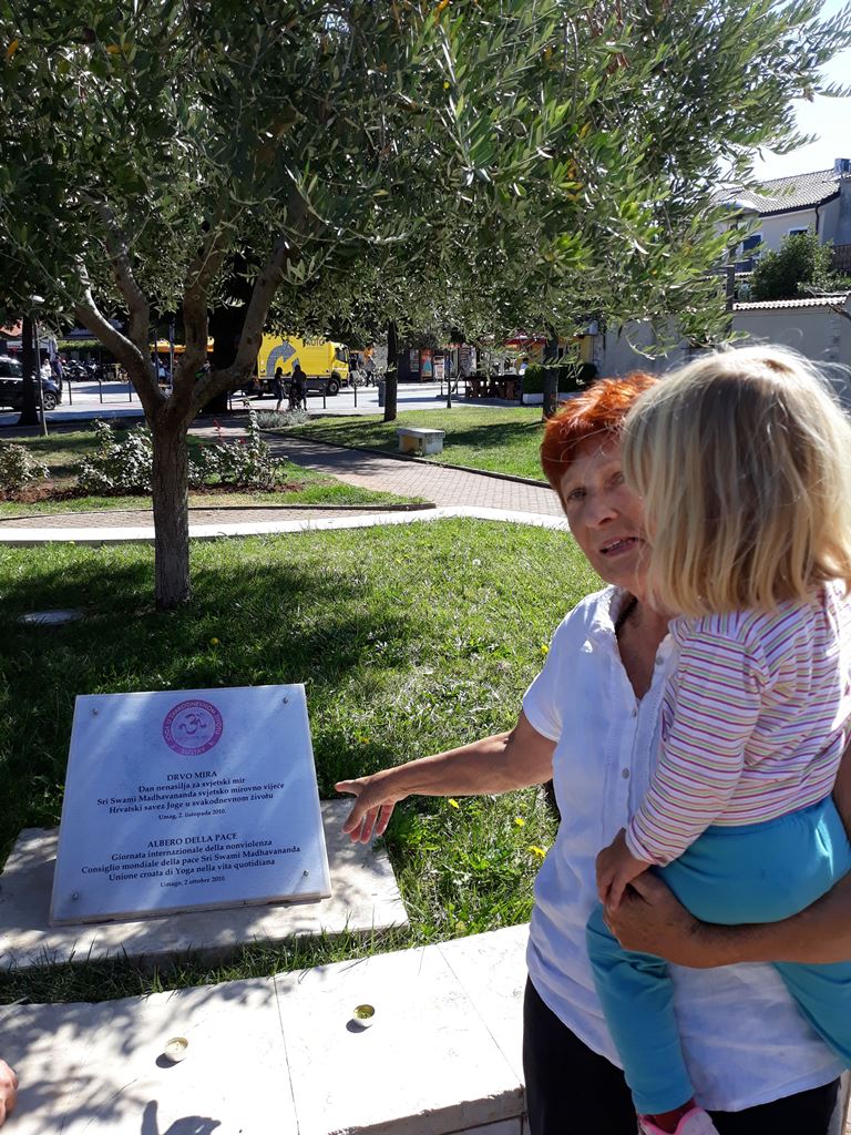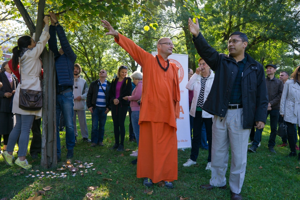 U Zagrebu nam se pridružio i veleposlanik Indije u Republici Hrvatskoj NJ.E. g. Arindam Bagchi. Veleposlanik se obratio publici prigodnim riječima, a u ime cijele grupe je na zagrebačko Stablo mira je privezao, prema tradicionalnom indijskom običaju, rakhi (nit) koja simbolizira zajedničku želju okupljenih za mir u nama samima, mir u našoj porodici, mir u našoj zajednici i mir u svijetu. Okupljenima se obratio i Mahamandaleshwar Swami Vivekpuri podsjetivši kako je ove godine UN fokus proslave Dana mira dao upravo na klimatske promijene koje izravno ugrožavaju našu sigurnost i naše živote. Na kraju su svi prisutni uz molitvu za mir, upalili i svjećice što je tradicija molitvi za mir u Hrvatskoj još od Umaga 2001. godine. Njegova ekscelencija je pozvala sve prisutne da svojim dolaskom podrže i daljnje događaje kojima će se obilježiti Međunarodni dan nenasilja i 150 godina od rođenja Mahatme Gandhija te skorašnje postavljanje Gandhijeve biste u obližnjem parku jezera Bundek u zagrebu.