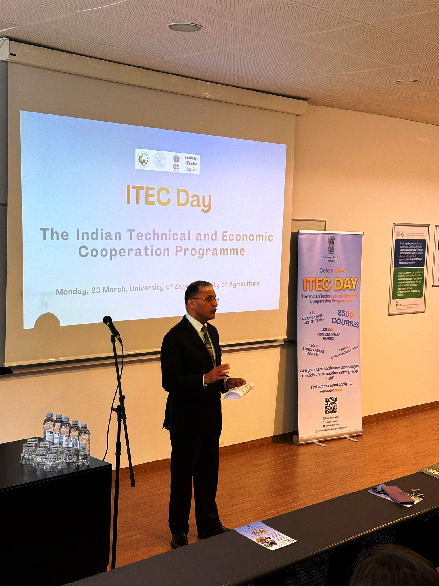 U uvodnom dijelu okupljenima su se obratili Nj.E. ambasador Indije u Hrvatskoj G. Arun Goel i dekan Agronomskog fakulteta G. Aleksandar Mešić. Predavanja o iskustvu sudjelovanja na ITEC programima u Indiji podijelili su prof.dr.sc. Ivan Miškulin i prof. Sanja Gavrančić, stručna suradnica pedagoginja u osnovnoj školi te instruktorica i koordinatorica Joge u svakodnevnom životu Split. Svoje iskustvo sudjelovanja na ITEC programu u New Delhiju početkom 2026. godine, na Nacionalnom inistitutu za planiranje i administraciju u obrazovanju sažela je u svojoj prezentaciji prikazujući i fotografije "Inspirativne Indije", kako je glasio naslov predavanja.