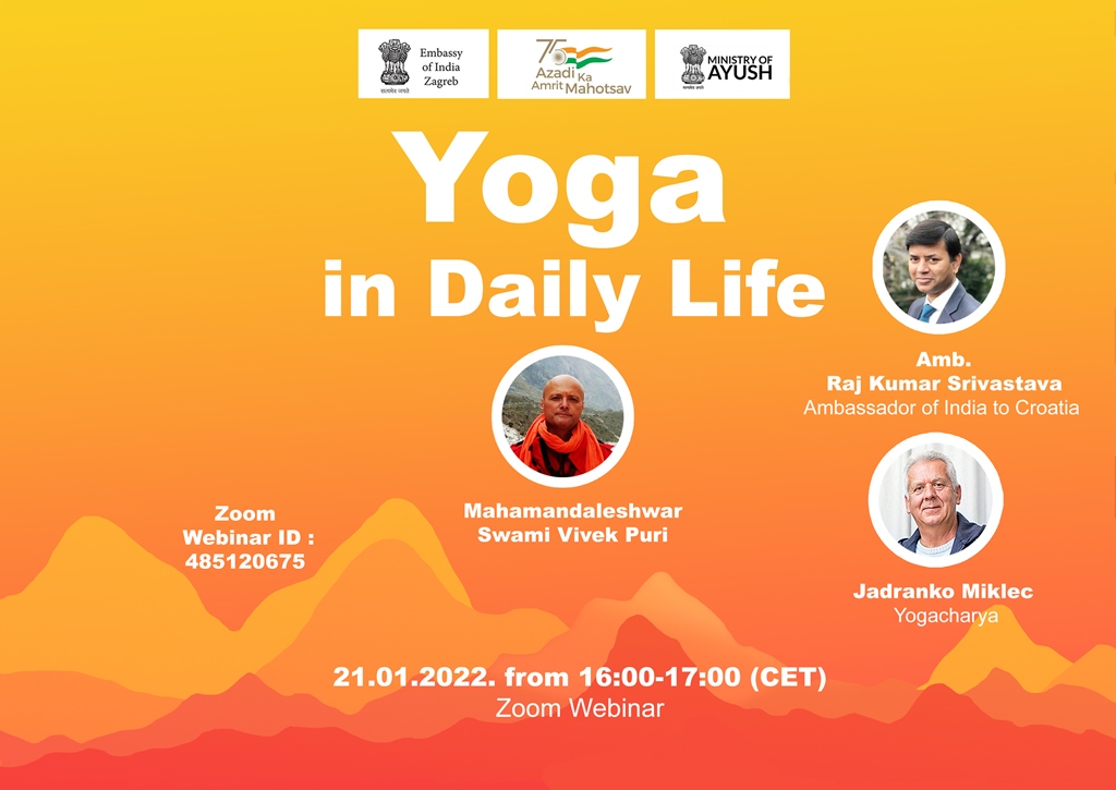 Predstavljanje sustava Joga u svakodnevnom životu kroz zanimljiv webinar u organizaciji indijske ambasade i uz sudjelovanje njegove excelencije g. Raj Kumar Srivastave 21. siječnja od 16 do 17 sati.